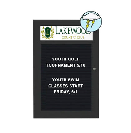 The Extreme WeatherPlus™ LED Lit Outdoor Enclosed Radius Edge Letter Board with Header is designed to meet the challenges of outdoor settings. It features a robust construction that can withstand harsh weather conditions, including rain, snow, and strong winds. The single-door cabinet is made of high-quality aluminum alloy that's rustproof, has weather-treated finishes, and is resistant to fading, ensuring that it will last for years.