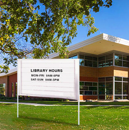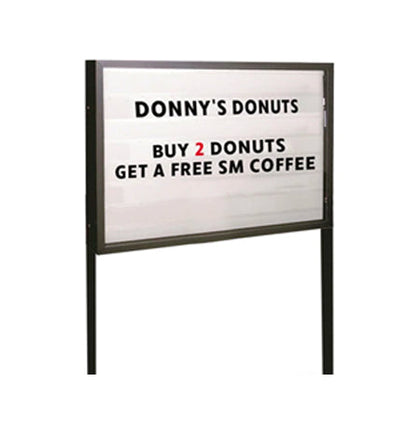 These two-sided reader boards with changeable letters are great for displaying your message in high-traffic public areas. Your message will be seen no matter your audience's direction. Our free-standing reader boards come with two posts. The two 8 ft. aluminum posts have pre-drilled holes that attach to the sides of the exterior enclosed reader board cabinet.