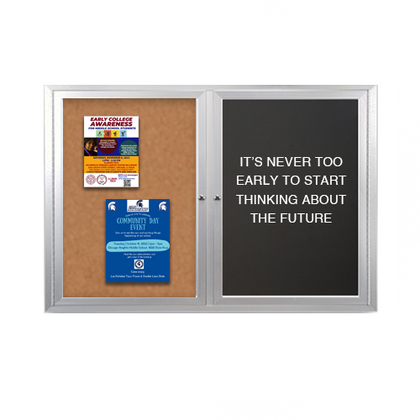On the Second Door Side you have a letter board with changeable letters and numbers to create a message with a schedule, event, product prices, team scores, directory, or any other announcement for your business or school, facility or organization and easily update with a new message