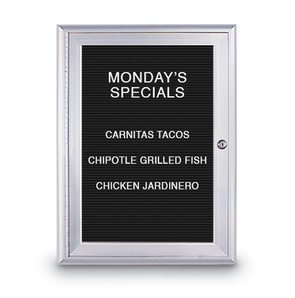 Our display cases for letter boards have sturdy aluminum construction with smooth rounded corners, which makes them ideal for daily use over a long period. The front door features a full-length piano hinge and a front cam lock to keep your messages safe and secure.